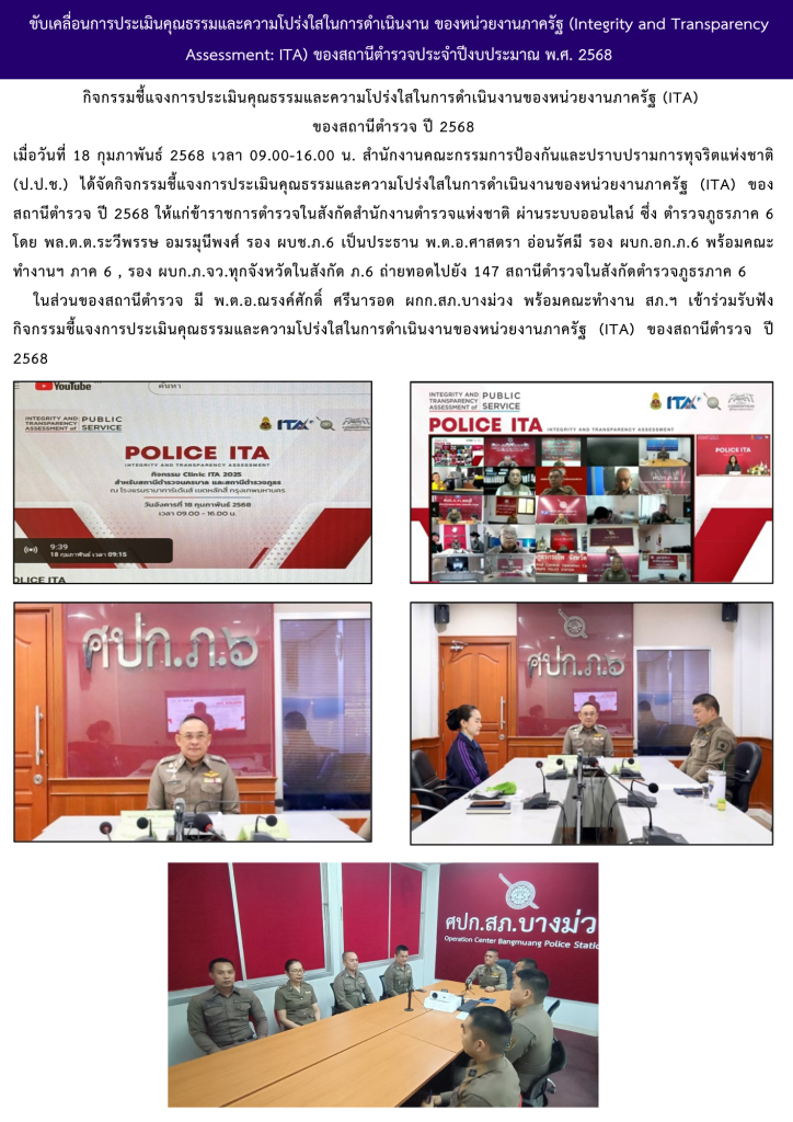 วันนี้ 6 ก.พ.68 เวลา 10.00 น. พ.ต.อ.ณรงค์ศักดิ์ ศรีนารอด ผกก.สภ.บางม่วง ,พ.ต.ท.อนุสรณ์ สินธุ์เทียม ร