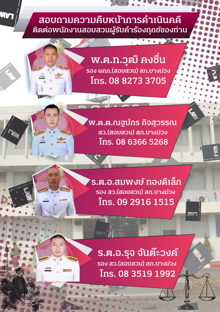 พ.ต.อ.ณรงค์ศักดิ์ ศรีนารอด ผกก.สภ.บางม่วง,พ.ต.ท.เอกรัฐ นุชเฉย รอง ผกก.สส.สภ.บางม่วง,พ.ต.ท.อนุสรณ์ สิ