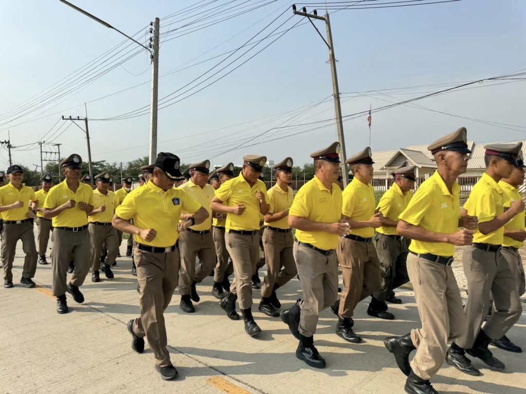 พ.ต.อ.ณรงค์ศักดิ์ ศรีนารอด ผกก.สภ.บางม่วง ได้เรียกข้าราชตำรวจ สภ.บางม่วง ทุกนาย ร่วมทำการฝึกทบทวนประจำสัปดาห์ ในท่าแบบฝึกบุคคลท่ามือเปล่า