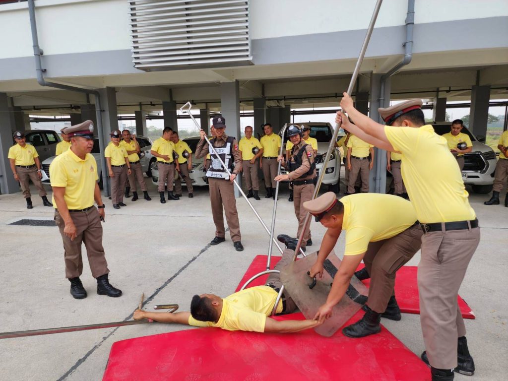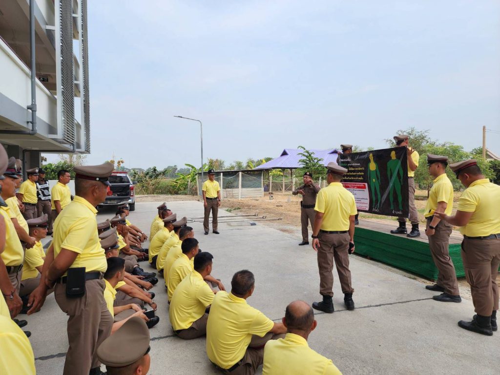 พ.ต.อ.ณรงค์ศักดิ์ ศรีนารอด ผกก.สภ.บางม่วง ได้เรียกข้าราชตำรวจ สภ.บางม่วง ทุกนาย เข้าร่วมทำการฝึกทบทวนประจำสัปดาห์