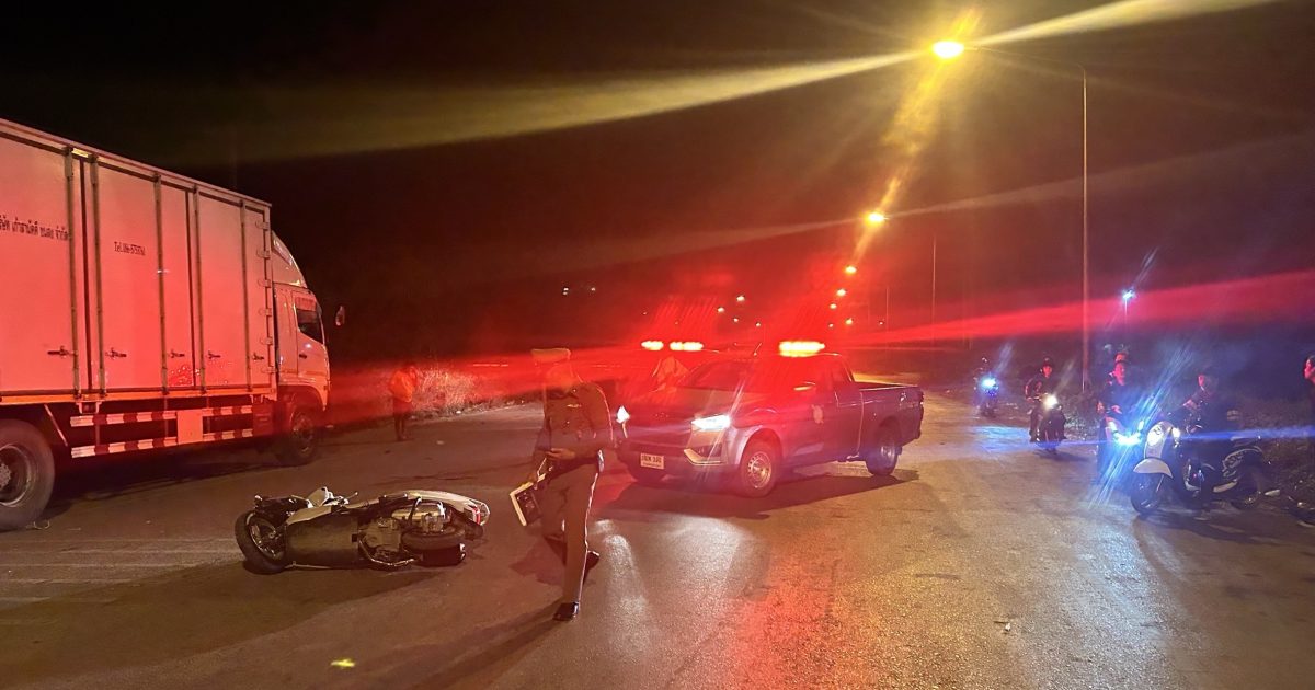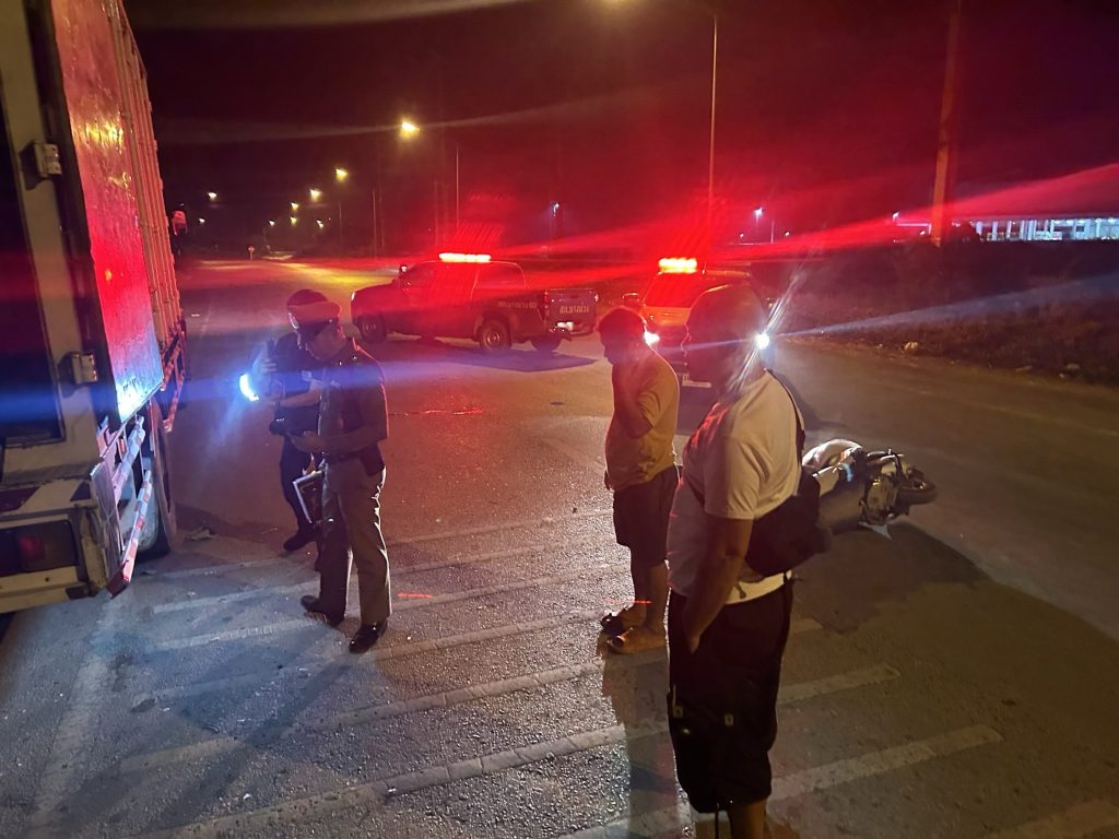 งานจราจร พร้อมด้วยพนักงานสอบสวน สภ.บางม่วง ร่อมออกตรวจสอบ อุบัติเหตุ รถ จยย.ชนรถ 6 ล้อ