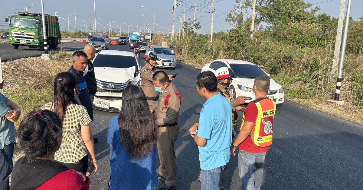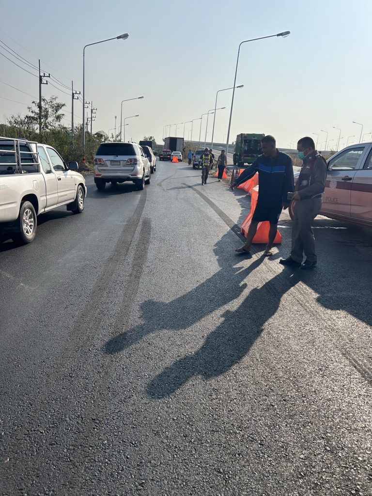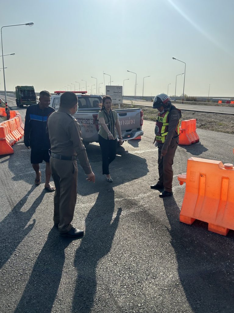 งานจราจร พร้อมด้วยพนักงานสอบสวน สภ.บางม่วง ร่อมออกตรวจสอบ อุบัติเหตุ รถเก๋ง+รถขยะ+รถหกล้อ