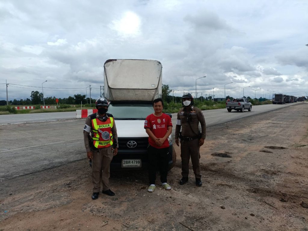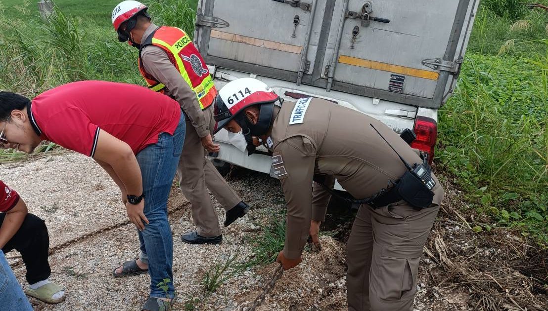 งานจราจร สภ.บางม่วง ช่วยเหลือรถกระบะตรกข้างทางเอง