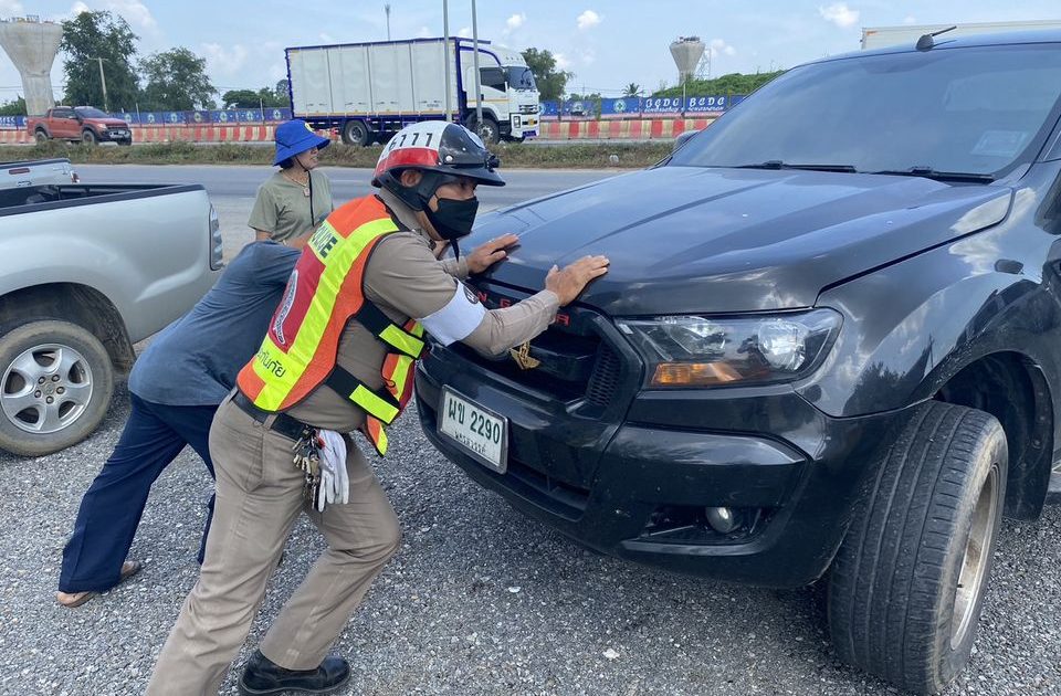 งานจราจร สภ.บางม่วง เข้าช่วยเหลือประชาชนที่รถยนต์อยู่ข้างทาง