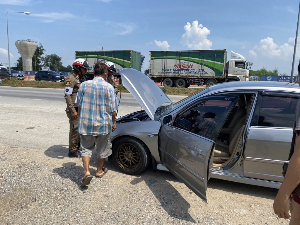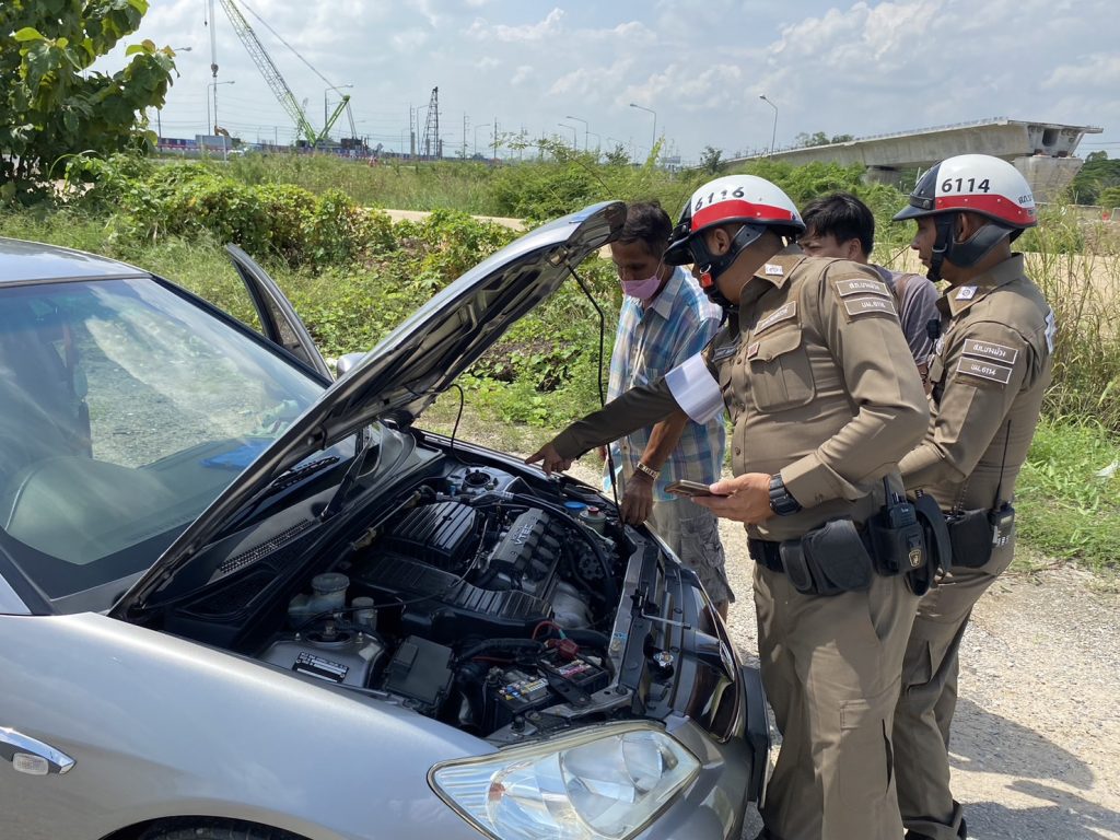 งานจราจร สภ.บางม่วง เข้าช่วยเหลือประชาชรที่รถยนต์เสียอยู่ข้างทาง