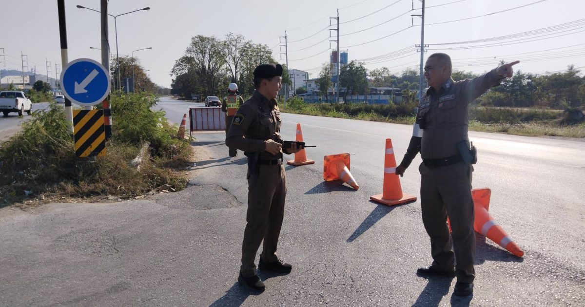 พ.ต.ท.อนุสรณ์ สินธุ์เทียม รอง ผกก.ป.สภ.บางม่วง พร้อมเจ้าหน้าที่อำนวยความสะดวกจราจร ออกแก้ไขปัญหาการจราจรถนนเส้น 117
