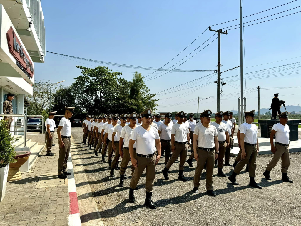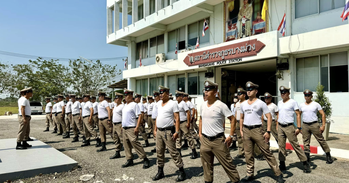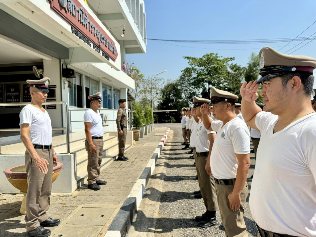 วันที่ 14 ก.พ.67 เวลา 14.00 น. พ.ต.อ.ณรงค์ศักดิ์ ศรีนารอด ผกก.สภ.บางม่วง,พ.ต.ท.เสวก ระมั่งทอง รอง ผกก.สส.สภ.บางม่วง ,พ.ต.ท.อนุสรณ์ สินธุ์เทียม รอง ผกก.ป.สภ.บางม่วง,พ.ต.ท.วุฒิ คงชื่น รอง ผกก.(สอบสวน) สภ.บางม่วง,พ.ต.ท.สุรเชษฐพันธ์ จุริตทะโย สว.(สอบสวน) สภ.บางม่วง,พ.ต.ท.พิสิฏพล ทองชุบ สว.อก.สภ.บางม่วง,พ.ต.ต.ปรีชา ปรีชาจารย์ สวป.สภ.บางม่วง,พ.ต.ต.สมพงษ์ แก้วร่วมวงค์ สว.สส.สภ.บางม่วง ได้เรียกข้าราชตำรวจ สภ.บางม่วง ทุกนาย ร่วมทำการฝึกทบทวนประจำสัปดาห์ ในท่าแบบฝึกบุคคลท่ามือเปล่า ณ บริเวณ ด้านหน้าอาคารทำที่การ สภ.บางม่วง
