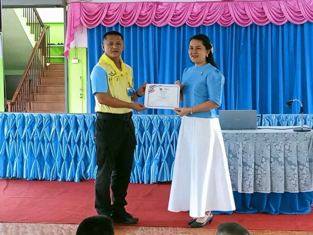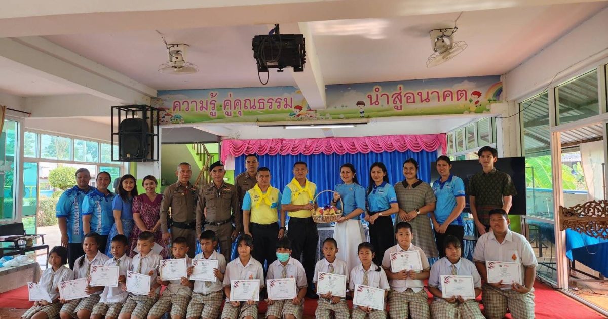 พ.ต.อ.ณรงค์ศักดิ์ ศรีนารอดผกก.สภ.บางม่วง พร้อมด้วยข้อราชการตำรวจ สภ.บางม่วงร่วมมอบใบประกาศให้กับนักเรียนโรงเรียนศิริราษฎร์สามัคคี