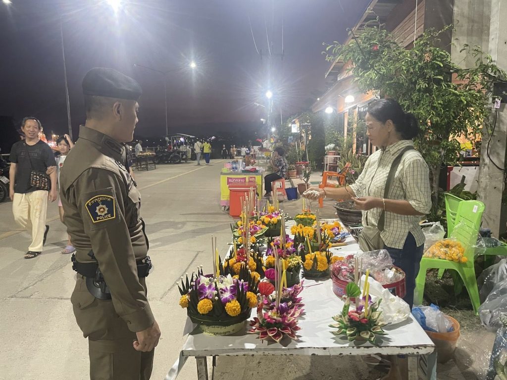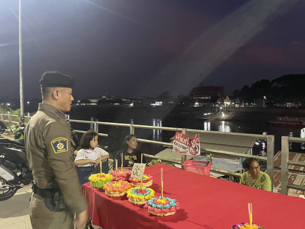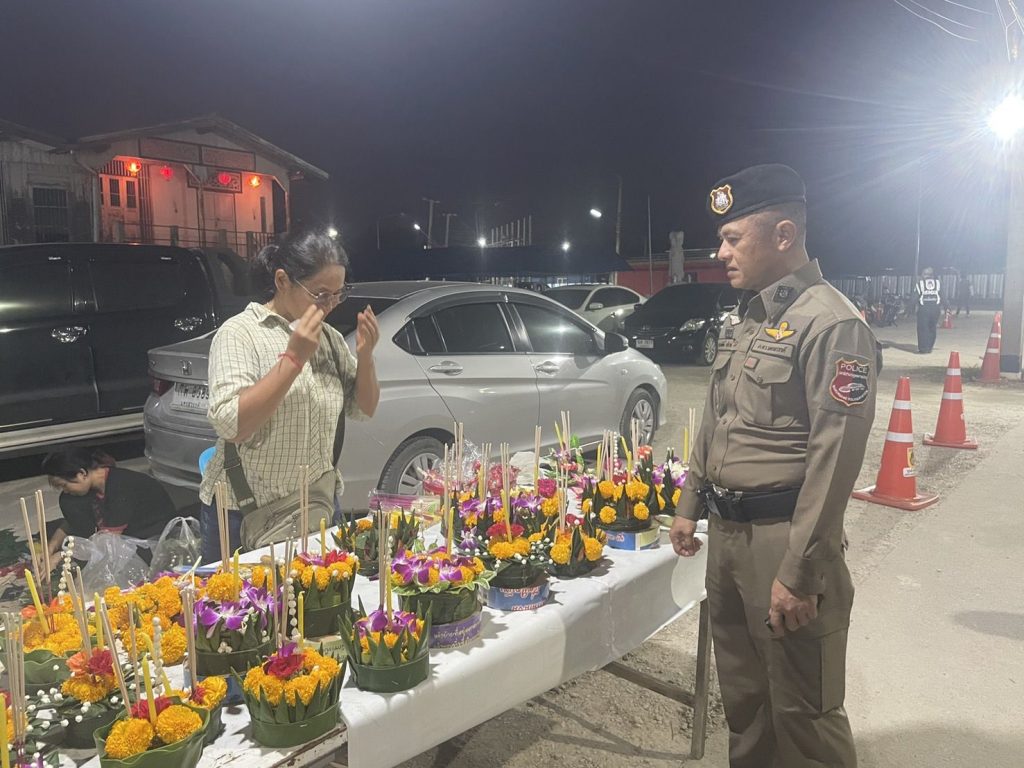 พ.ต.อ.ณรงค์ศักดิ์ ศรีนารอด ผกก.สภ.บางม่วง ตรวจเยี่ยมงานประเพณีลอยกระทง ในพื้นที่รับผิดชอบ