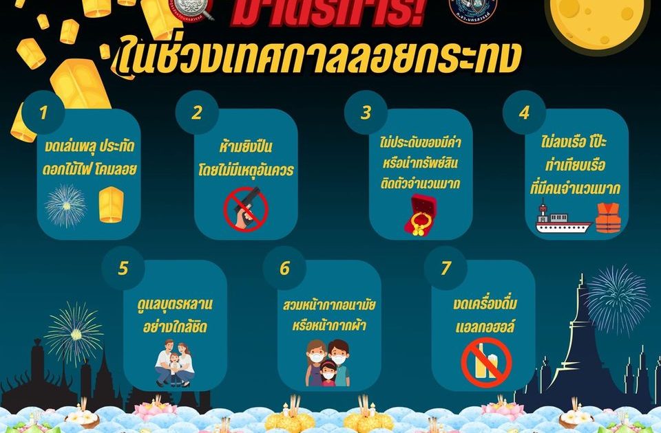มาตรการ ในช่วงเทศกาลลอยกระทง 27 พฤศจิกายน 2566 โดย bangmuangAdmin / ข่าวประชาสัมพันธ์,ข่าวประชาสัมพันธ์,ข่าวฝากประชาสัมพันธ์ เหตุด่วนเหตุร้ายแจ้ง 191 ทันที Facebook iconFacebookTwitter iconTwitterLINE iconLine