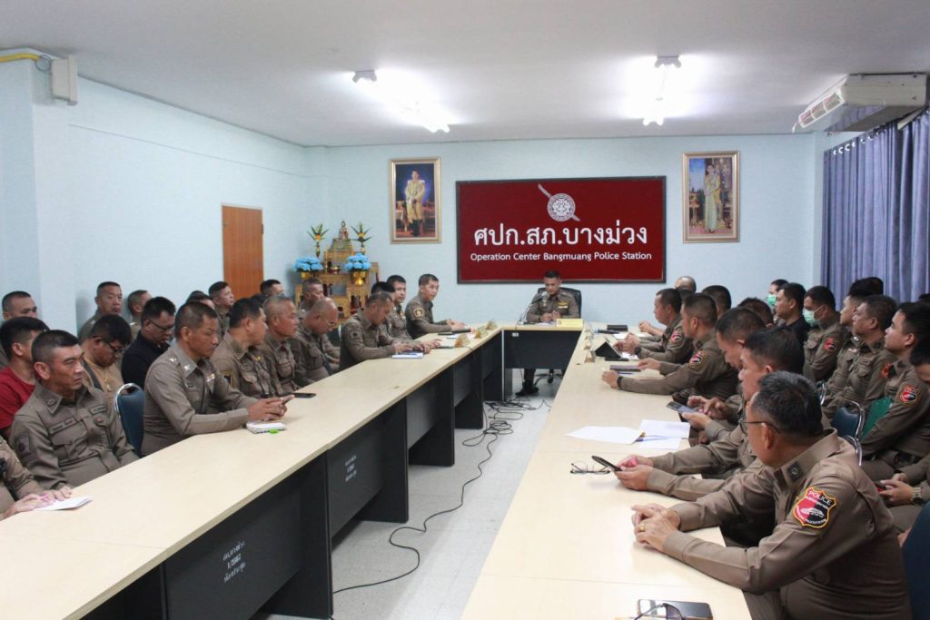 สภ.บางม่วง ประชุมประจำเดือน พฤศจิกายน 2567 13 พฤศจิกายน 2567 โดย สถานีตำรวจภูธร บางม่วง / ข่าวประชาสัมพันธ์,5 สายงาน,ITA,ข่าวประชาสัมพันธ์,ข่าวกิจกรรม เหตุการณ์ข่าวสาร ที่เกี่ยวข้องกับ สภ.บางม่วง,ข่าวประชาสัมพันธ์,ข่าวประชาสัมพันธ์ภารกิจผู้บังคับบัญชา,ข่าวประชาสัมพันธ์,5 สายงาน,อำนวยการ วันนี้ 13 พ.ย.67 เวลา 10.00 น. พ.ต.อ.ณรงค์ศักดิ์ ศรีนารอด ผกก.สภ.บางม่วง พร้อมด้วย พ.ต.ท.อนุสรณ์ สินธุ์เทียม รอง ผกก.ป.สภ.บางม่วง,พ.ต.ท.เสวก ระมั่งทอง รอง ผกก.สส.สภ.บางม่วง,พ.ต.ท.วุฒิ คงชื่น รอง ผกก.(สอบสวน)สภ.บางม่วง,พ.ต.ท.พิสิฏพล ทองชุบ สว.อก.สภ.บางม่วง,พ.ต.ท.สุรเชฐพันธ์ จุริตทะโย สว.(สอบสวน)สภ.บางม่วง,พ.ต.ต.สมพงษ์ แก้วร่วมวงค์ สว.สส.สภ.บางม่วง,พ.ต.ต.ปรีชา ปรีชาจารย์ สวป.สภ.บางม่วง ได้เรียกข้าราชการตำรวจ สภ.บางม่วง เข้าร่วมประชุมประจำเดือน พ.ย. 67 สภ.บางม่วง พิธีประดับยศข้าราชการตำรวจ และมอบทุนการศึกษาให้กับลูกของข้าราชการตำรวจสภ.บางม่วง และเน้นย้ำกำชับมาตรการควบคุมความประพฤติตามคำสั่งตร.1212 กำชับนโยบายต่อต้านการรับสินบน(Anti-bribery Policy) ณ ห้องประชุม ชั้น 3 สภ.บางม่วง พร้อมรับประทานอาหารกลางวันร่วมกัน Facebook iconFacebookTwitter iconTwitterLINE iconLine