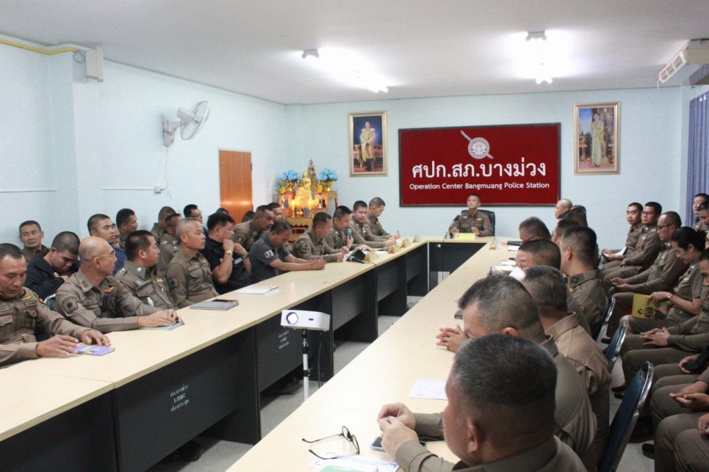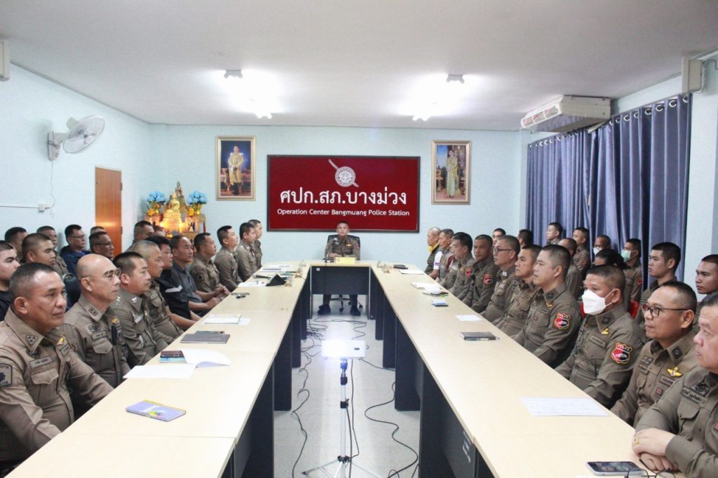สภ.บางม่วง ประชุมประจำเดือน ธันวาคม 2567 18 ธันวาคม 2567 โดย สถานีตำรวจภูธร บางม่วง / ข่าวประชาสัมพันธ์,5 สายงาน,ITA,ข่าวประชาสัมพันธ์,ข่าวกิจกรรม เหตุการณ์ข่าวสาร ที่เกี่ยวข้องกับ สภ.บางม่วง,ข่าวประชาสัมพันธ์,ข่าวประชาสัมพันธ์ภารกิจผู้บังคับบัญชา,ข่าวประชาสัมพันธ์,5 สายงาน,อำนวยการ วันนี้ 18 ธ.ค.67 เวลา 10.00 น. พ.ต.อ.ณรงค์ศักดิ์ ศรีนารอด ผกก.สภ.บางม่วง พร้อมด้วย พ.ต.ท.อนุสรณ์ สินธุ์เทียม รอง ผกก.ป.สภ.บางม่วง, พ.ต.ท.เสวก ระมั่งทอง รอง ผกก.สส.สภ.บางม่วง, พ.ต.ท.วุฒิ คงชื่น รอง ผกก.(สอบสวน)สภ.บางม่วง, พ.ต.ท.พิสิฏพล ทองชุบ สว.อก.สภ.บางม่วง, พ.ต.ท.สุรเชฐพันธ์ จุริตทะโย สว.(สอบสวน)สภ.บางม่วง, พ.ต.ต.สมพงษ์ แก้วร่วมวงค์ สว.สส.สภ.บางม่วง, พ.ต.ต.ปรีชา ปรีชาจารย์ สวป.สภ.บางม่วง ได้เรียกข้าราชการตำรวจ สภ.บางม่วง เข้าร่วมประชุมประจำเดือน ธ.ค.67 สภ.บางม่วง มอบทุนการศึกษาให้กับบุตรของข้าราชการตำรวจ สภ.บางม่วง และได้เน้นย้ำกำชับมาตรการควบคุมความประพฤติตามคำสั่งตร.1212 กำชับนโยบายต่อต้านการรับสินบน(Anti-bribery Policy) ณ ห้องประชุมชั้น 3 สภ.บางม่วง พร้อมรับประทานอาหารกลางวันร่วมกัน Facebook iconFacebookTwitter iconTwitterLINE iconLine