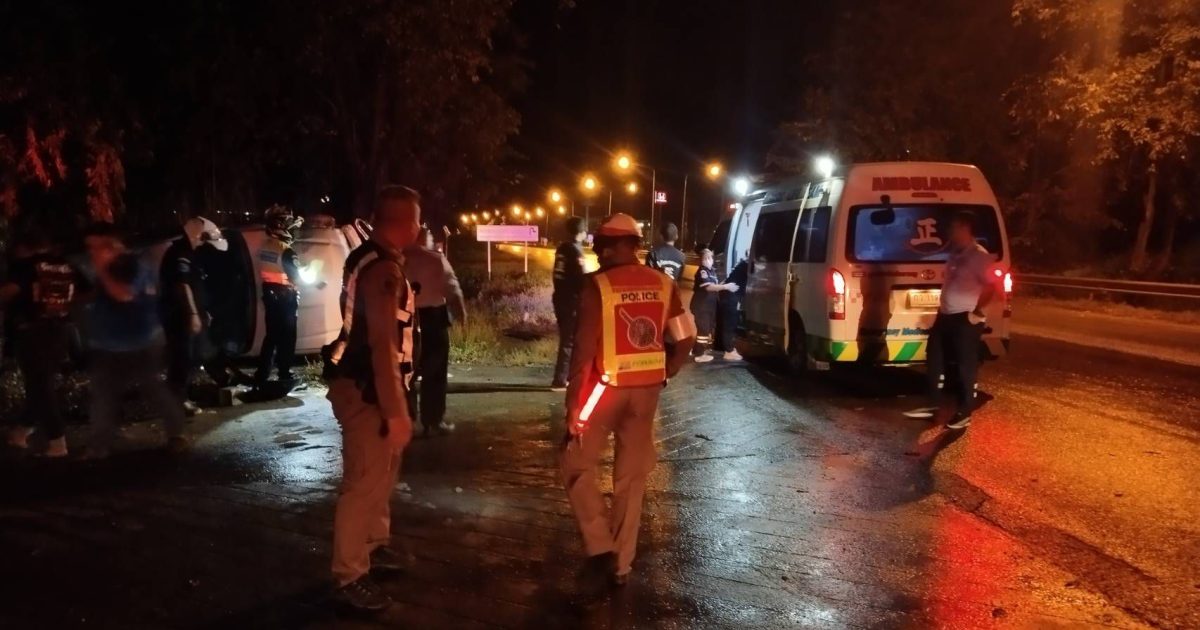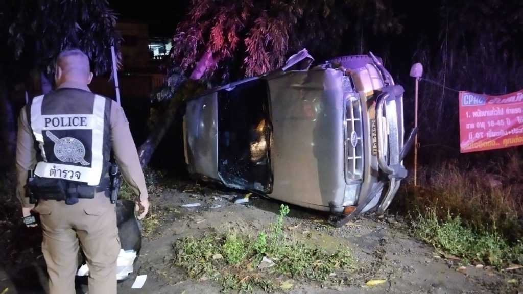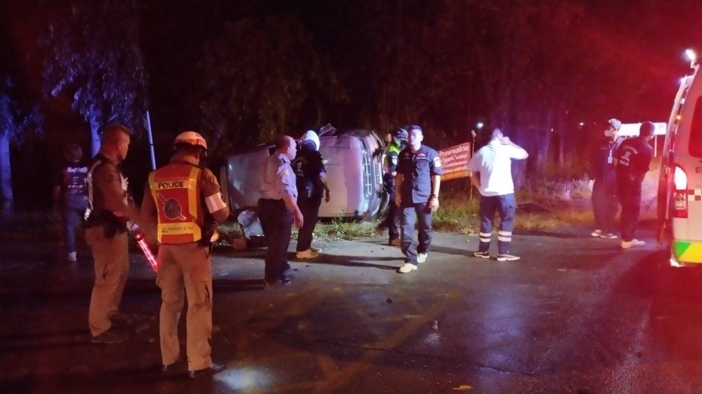 สายตรวจจราจร พร้อมสายตรวจรถยนต์ จักรยานยนต์ ร่วมออกเหตุ รถยนต์เสียหลักพลิกคว่ำ