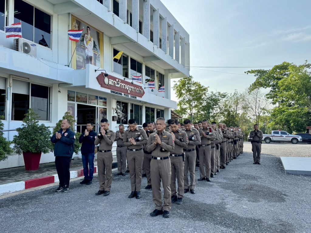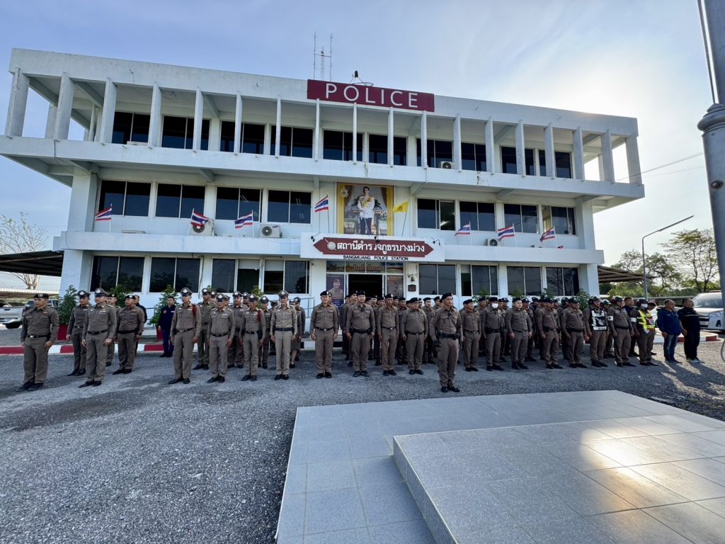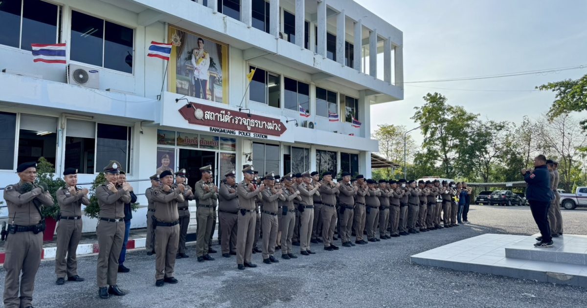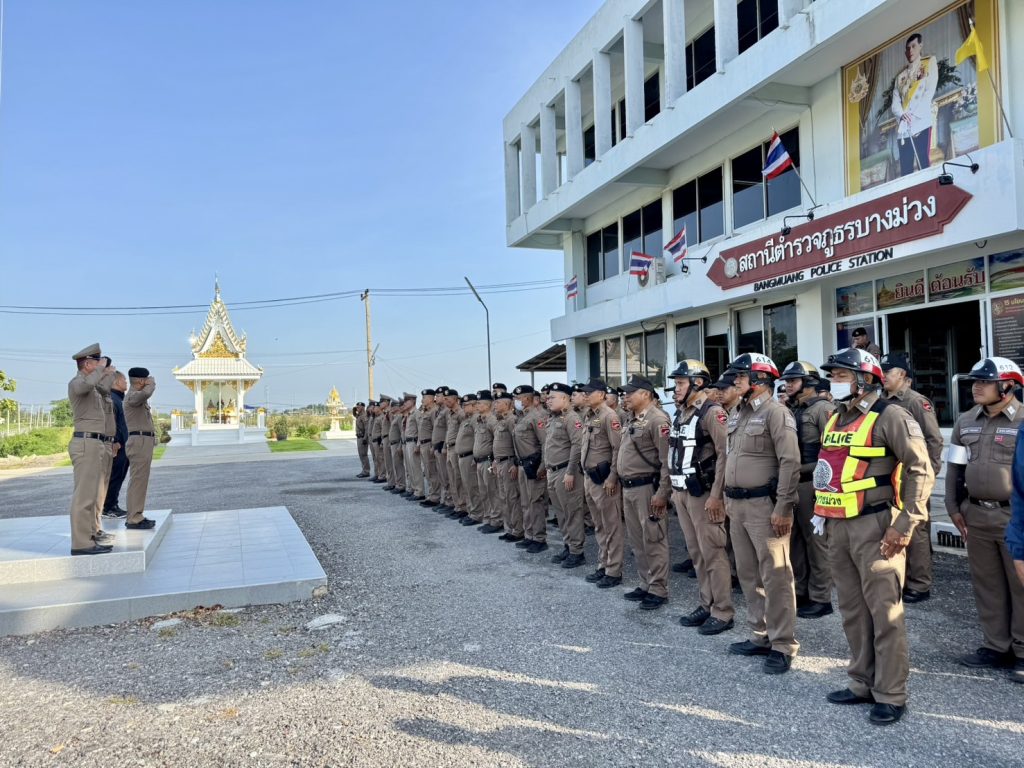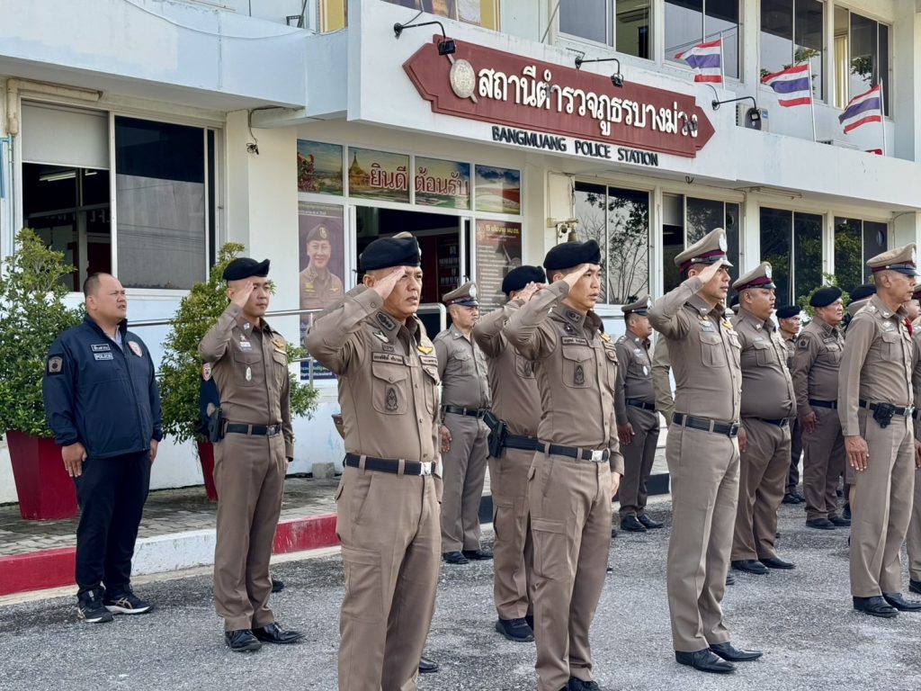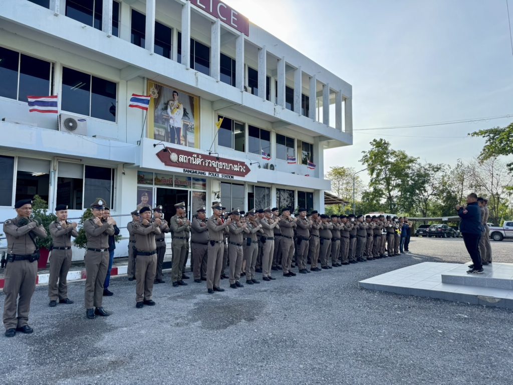 เข้าแถวเคารพธงชาติ 22 เมษายน 2568 โดย สถานีตำรวจภูธร บางม่วง / ข่าวประชาสัมพันธ์,5 สายงาน,ITA,ข่าวประชาสัมพันธ์,ข่าวกิจกรรม เหตุการณ์ข่าวสาร ที่เกี่ยวข้องกับ สภ.บางม่วง,ข่าวประชาสัมพันธ์,ข่าวประชาสัมพันธ์ภารกิจผู้บังคับบัญชา,ข่าวประชาสัมพันธ์,5 สายงาน,จราจร,ข่าวประชาสัมพันธ์,5 สายงาน,ป้องกันปราบปราม,ข่าวประชาสัมพันธ์,5 สายงาน,สอบสวน,ข่าวประชาสัมพันธ์,5 สายงาน,สืบสวน,ข่าวประชาสัมพันธ์,5 สายงาน,อำนวยการ พ.ต.อ.ณรงค์ศักดิ์ ศรีนารอด ผกก.สภ.บางม่วง,พ.ต.ท.เอกรัฐ นุชเฉย รอง ผกก.สส.สภ.บางม่วง,พ.ต.ท.อนุสรณ์ สินธุ์เทียม รอง ผกก.ป.สภ.บางม่วง,พ.ต.ท.วุฒิ คงชื่น รอง ผกก.(สอบสวน) สภ.บางม่วง,พ.ต.ท.พิสิฏพล ทองชุบ สว.อก.สภ.บางม่วง,พ.ต.ท.สมพงษ์ แสนคำ สว.สส.สภ.บางม่วง,พ.ต.ต.ปรีชา ปรีชาจารย์ สวป.สภ.บางม่วง,พ.ต.ต.ณฐปกร กิจสุวรรณ สว.(สอบสวน) สภ.บางม่วง พร้อมด้วยข้าราชการตำรวจ สภ.บางม่วง ร่วมทำกิจกรรมหน้าเสาธง อันประกอบด้วย การเคารพธงชาติ สวดมนต์ กล่าวบทปลงใจ กล่าวคำสัตย์ปฏิญาณ อุดมคติตำรวจและได้ทำการตรวจเครื่องแบบอุปกรณ์การปฏิบัติหน้าที่ ตรวจทรงผม มอบนโยบายการปฏิบัติหน้าที่ กำชับมาตรการควบคุมความประพฤติตามคำสั่งตร.1212 กำชับนโยบายต่อต้านการรับสินบน(Anti-bribery Policy) Facebook iconFacebookTwitter iconTwitterLINE iconLine
