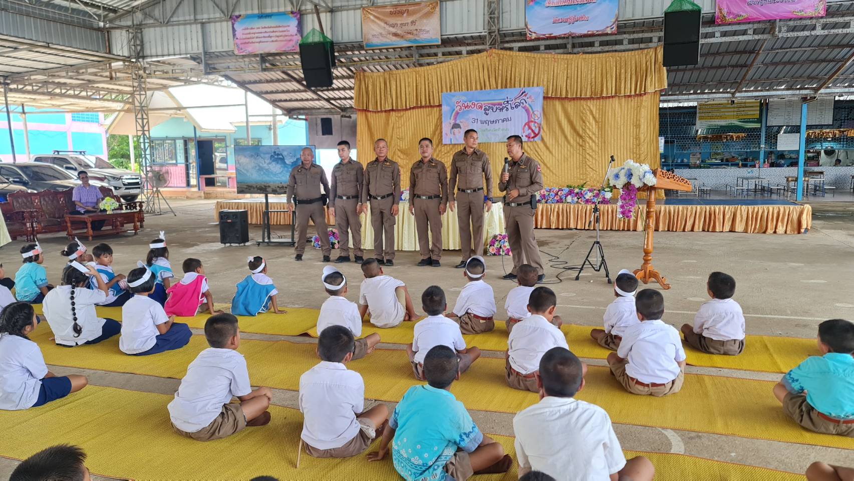 ชมส.สภ.บางม่วง ดำเนินการอบรมให้ความรู้แก่เด็กนักเรียนเกี่ยวกับความอันตรายของบุหรี่ไฟฟ้าและยาเสพติดในปัจจุบัน