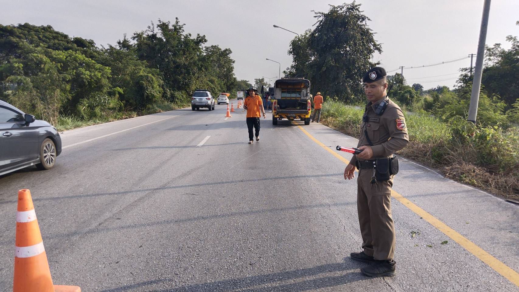 วันที่ 14 พ.ย.67 เวลา15.55 น. บม.6112 พร้อมสายตรวจบึงน้ำใส ว.4 เหตุ ว 40 รถบรรทุกชิ้นส่วนไก่ ยางแตก