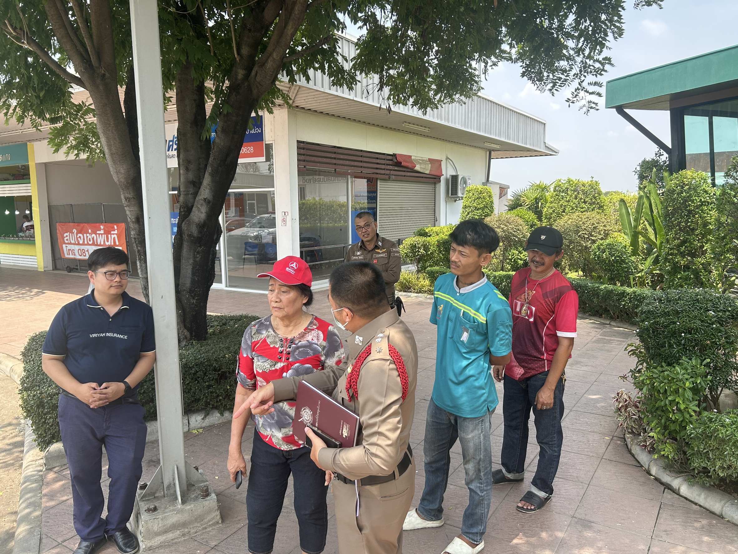 พนักงานสอบสวนพร้อมกำลังจราจร สภ.บางม่วง ร่วมออกเหตุ รถชนกันในปั๊มน้ำมัน